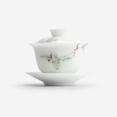 手绘马尾松盖碗